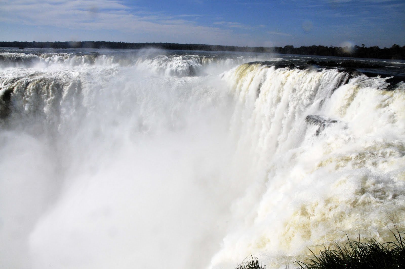 Es ist eine beeindruckend schöne Aussicht, aber durch die tosenden Wassermassen recht feucht, um nicht zu sagen nass.